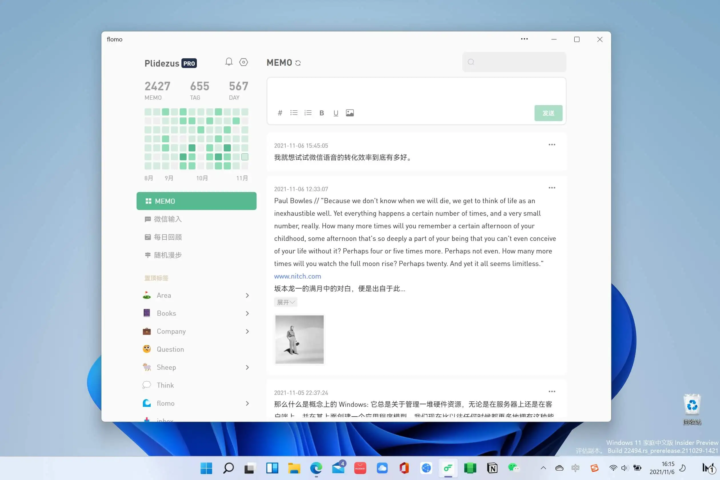 flomo 的 Windows 原生版本除了具备网页版的基本功能外,还额外支持: