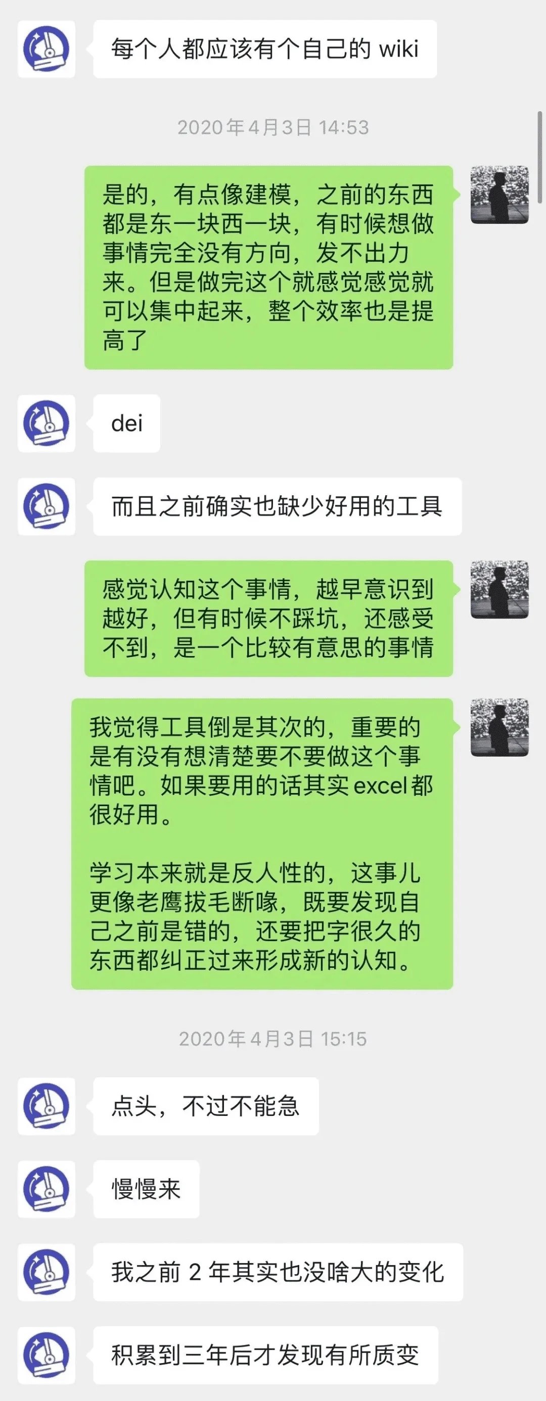 知识是需要慢慢积累的,认知也是不断迭代的。知识库可能会不断的重构,调整,这个过程也是我们认知调整的过程,也就是成长。